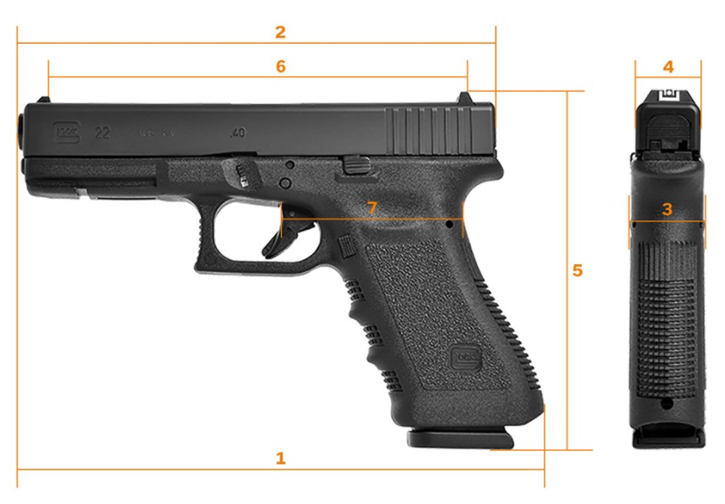 Con mucho, la pistola de servicio policial más popular en los Estados Unidos, la GLOCK 22 dispara el potente cartucho 40 S&W y tiene más rondas para su tamaño y peso que la mayoría de las otras pistolas de tamaño completo de su clase.