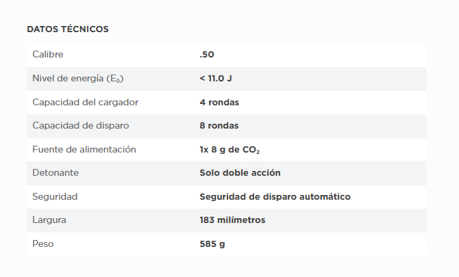- Pistola Táctica Compacta (TP) en calibre .50