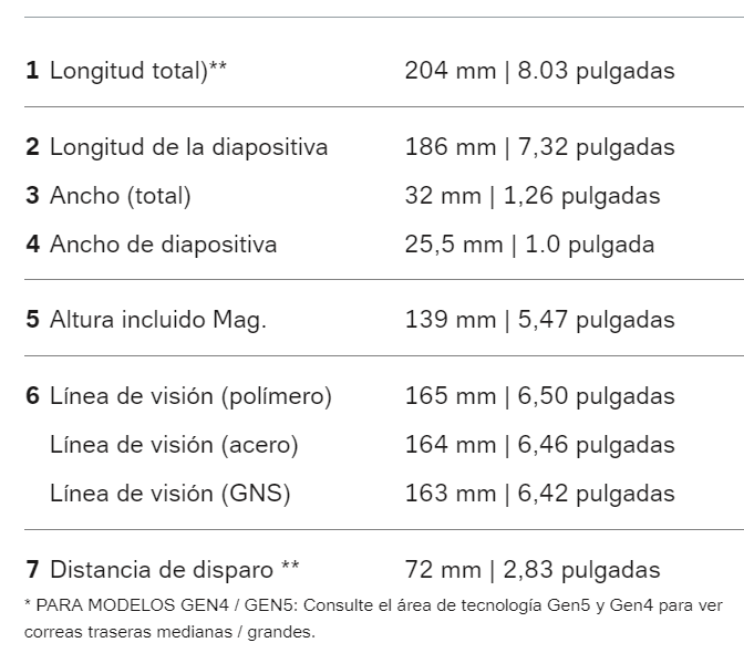 | Capacidad del cargador | 17 rondas (opcionales: 19 / 24 / 31 / 33 rondas) |