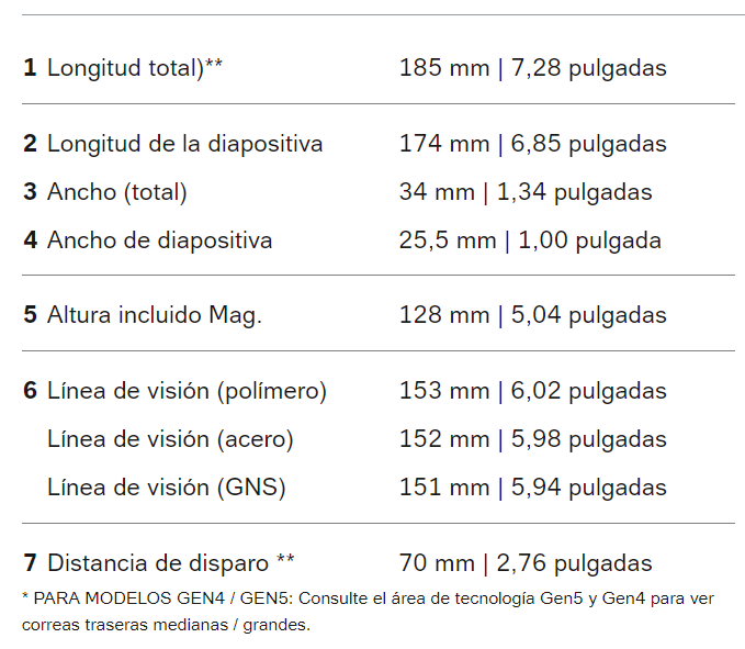 | Capacidad del cargador | 17 rondas (Opcionales: 19 / 24 / 31 / 33 rondas) |