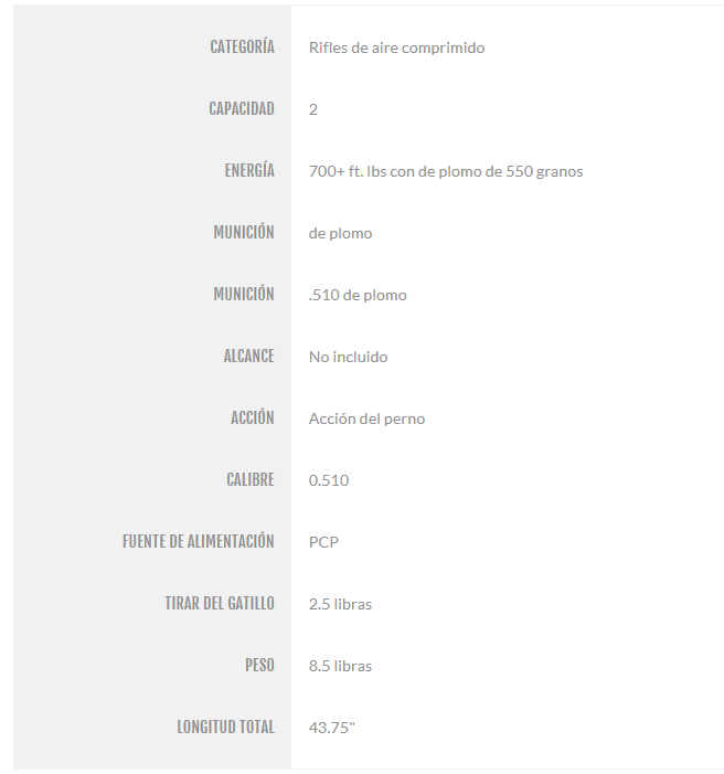 - Rifle de aire de caza mayor calibre .50