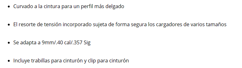 Con el doble de capacidad que nuestras cajas Single Mag, las cajas Double Mag tienen un resorte de tensión incorporado que sujeta de forma segura cargadores de varios tamaños. Un gancho ajustable con clip para cinturón acomoda cinturones de diferentes anchos.